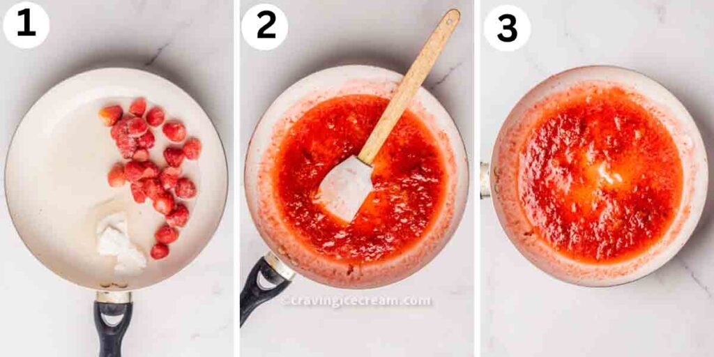- Take the pan off the heat and let the sauce cool completely. This will be the strawberry base for your ice cream.