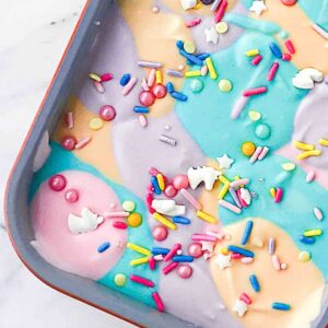 With its soft pastel swirls and sparkle on top, this no churn recipe is a guaranteed crowd-pleaser for parties, summer afternoons, or anytime you want to brighten someone’s day.