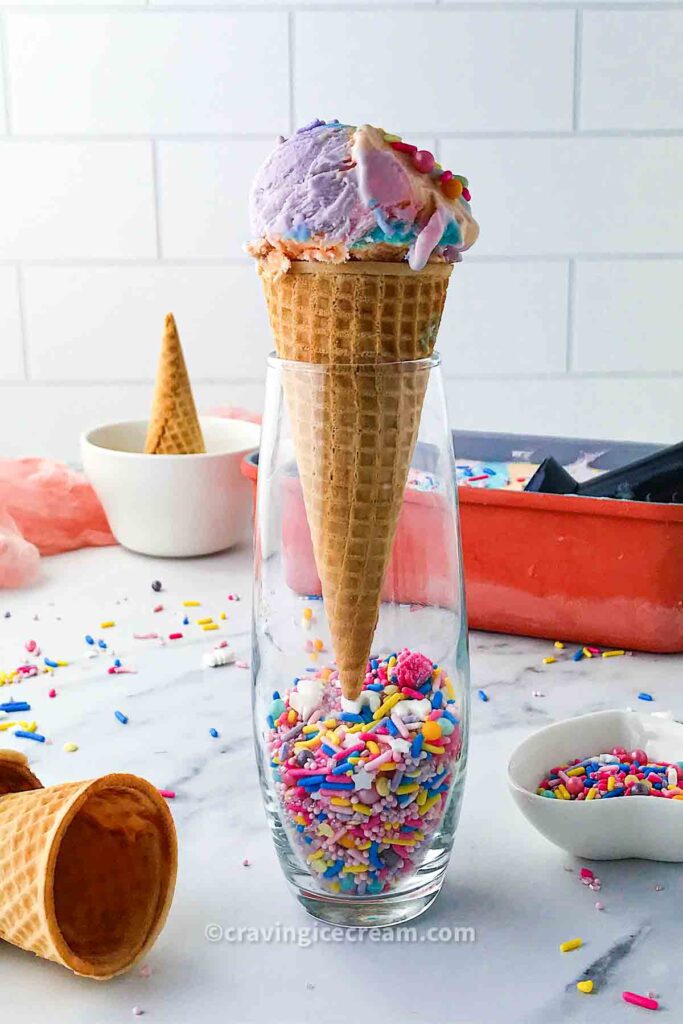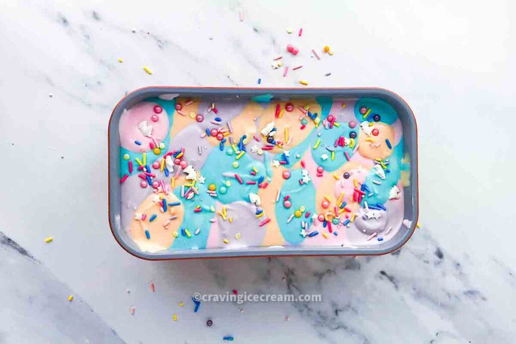 Beyond the bright pastels and glitter, this ice cream is also creamy, delicious, and endlessly customizable. You can adjust the colors, swap out the sprinkles, or add in edible glitter for even more sparkle.